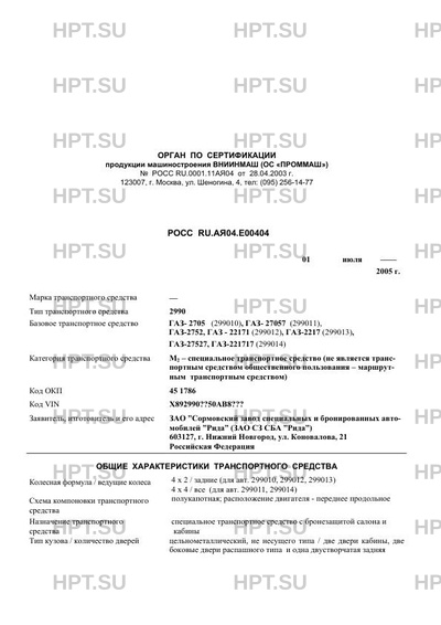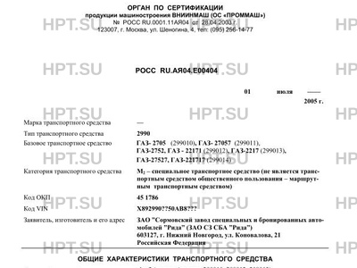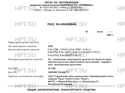 | Базовое ТС / Шасси | ГАЗ- 2705 (299010), ГАЗ- 27057 (299011), ГАЗ-2752, ГАЗ - 22171 (299012), ГАЗ-22… |