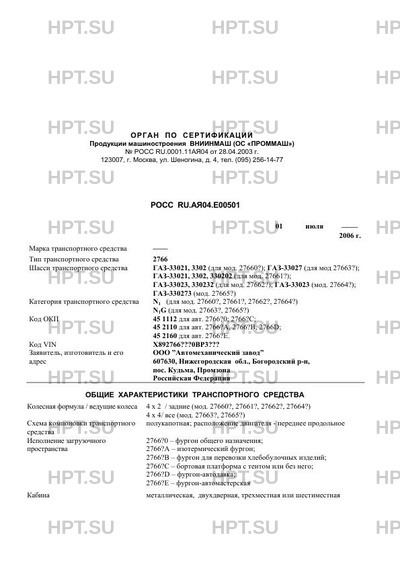 | Категория ТС | N1 (для мод. 27660?, 27661?, 27662?, 27664?) N1G (для мод. 27663?, 27665?) |