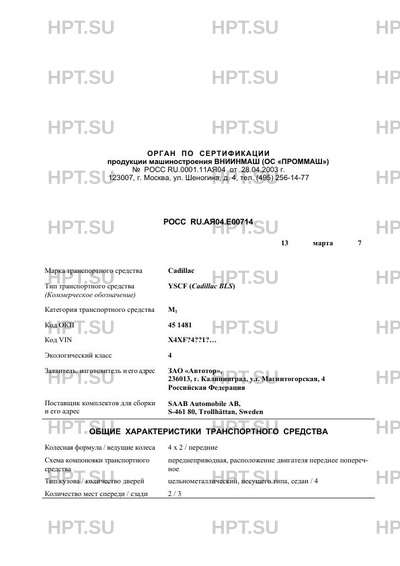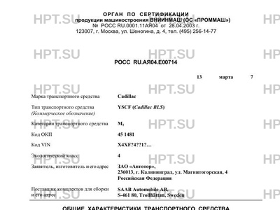 | Тип ТС | YSCF (Cadillac BLS) Экологический класс: 4 |