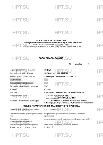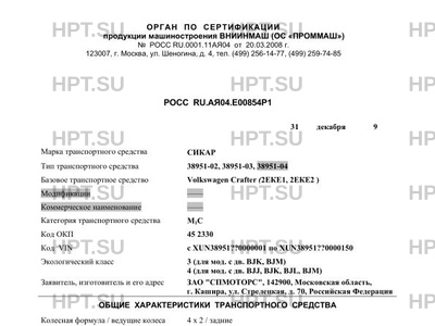 Код VIN с XUN38951??0000001 по XUN38951??0000150