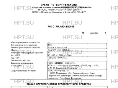 | Базовое ТС / Шасси | FAW CA1031НK26F FAW CA1031НK26F-С |