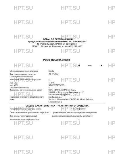 | Заявитель | ООО "ФОЛЬКСВАГЕН Рус", 248009, г. Калуга, ул. Заводская, д. 57, Российская Федерация |
