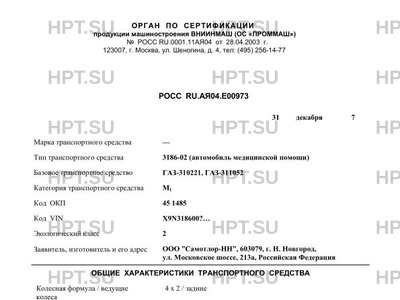 | Коммерческое наименование | 3186-02 (автомобиль медицинской помощи) |