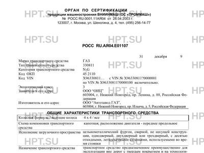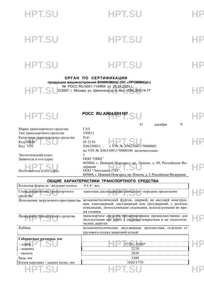 | Код VIN | X96330811… с VIN № Х96330811?0000001 по VIN № Х96330811?0000100 включительно. |