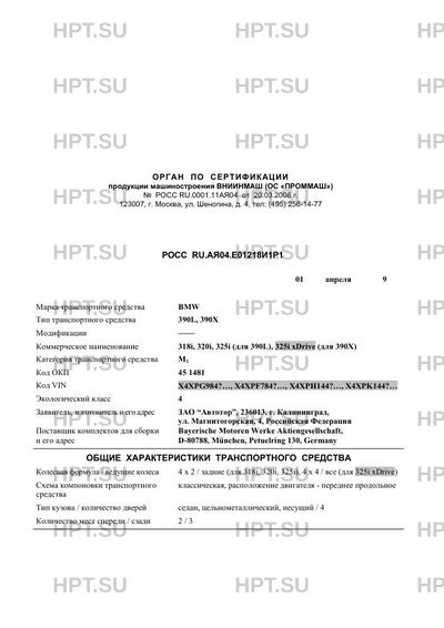 | Коммерческое наименование | 318i, 320i, 325i (для 390L), 325i xDrive (для 390X) |