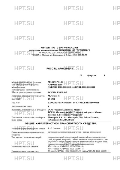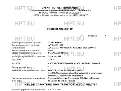 | Заявитель | ООО "Русские Автобусы Марко", 143050, Московская обл., Одинцовский р-н, д. Малые Вяземы, 1, Российская Федерация |