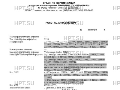 | Оборудование ТС | кондиционер с хладагентом R134A, стеклоочистители с датчиком дождя, очистители фар, люк в крыше, подножки, багажные полки, сдвижная боковая дверь с электроприводом, дополнительный отопитель, система парковки (Parktronic), система автоматического отпирания водительской двери и открывания боковых сдвижных дверей, система обеспечения курсовой устойчивости с учетом полезной нагрузки (Adaptive ESP) Соответствие транспортных средств определённому экологическому классу определяется по коду производителя базового транспортного средства Pr. Code (см. таблицу ниже), который указывается на наклейке в сервисной книжке автомобиля, копия наклейки находится в салоне, со стороны водителя под панелью приборов, на внутренней поверхности крышки блока предохранителей или в дверном проёме двери водителя, в зоне петель двери. Таблица |