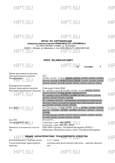 | Категория ТС | M2 - автобус класса В (223300, 223305, 223310, 223301, 223311, 223312, 223313, … |