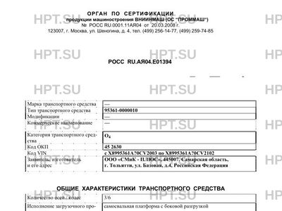 | Код VIN | с X8995361А?0CV2003 по X8995361А?0CV2102 |