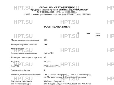 Предприятие-изготовитель ООО "Эллада Интертрейд", 236013, г. Калининград, ул. Магнитогорская, 4, Российская Федерация Поставщик комплектов для сборки и его адрес: Kia Motors Corporation, 231, Yangjae-Dong, Seocho-Gu, Seoul, 137-938, Korea