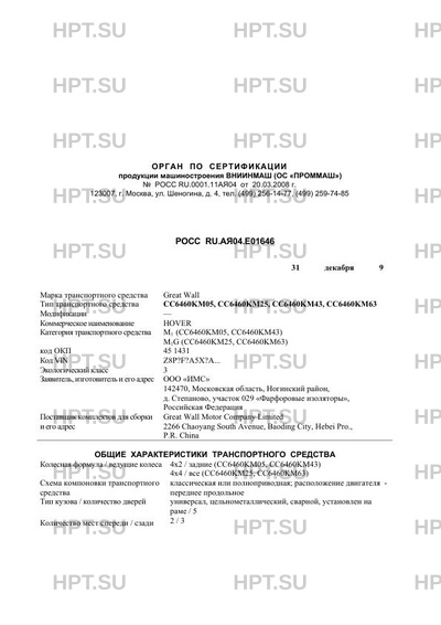 | Категория ТС | M1 (CC6460KM05, CC6460KM43) M1G (CC6460KM25, CC6460KM63) |