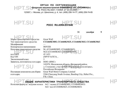 | ДВС | Shenyang Aerospace Mitsubi- shi Motors Engine Manufactur- ing Co., Ltd, 4G64S4M Great Wall Motor Co., Ltd, GW 2.8TC-2 четырехтактный, с принудительным зажиганием с воспламенением от сжатия, с турбонаддувом |