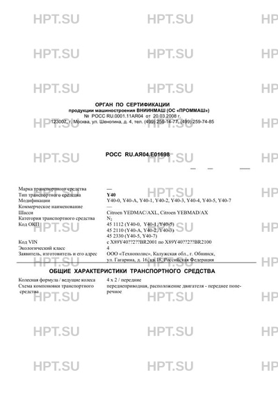 | Код VIN | с X89Y40??2??BR2001 по X89Y40??2??BR2100 |