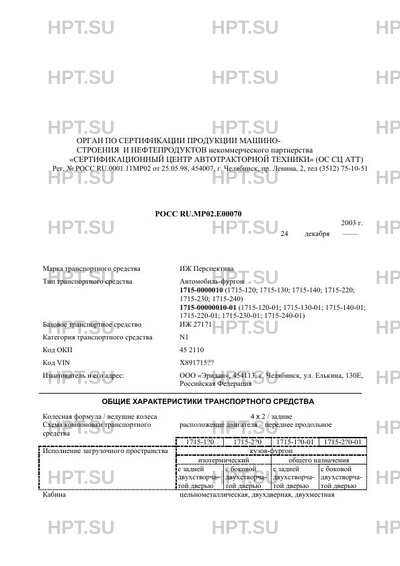 | Коммерческое наименование | Автомобиль-фургон 1715-0000010 (1715-120, 1715-130, 1715-140,1715-220, 1715-230… |