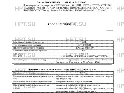 | Заявитель | Общество с ограниченной ответственностью "СпецАвтоВосток", ул. Красная, 4, г. Челябинск, 454091 |