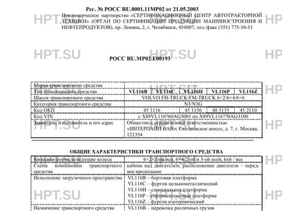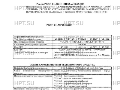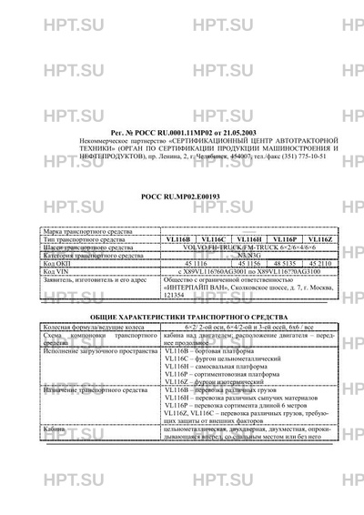 Тип ТС VL116B VL116C VL116H VL116P VL116Z
