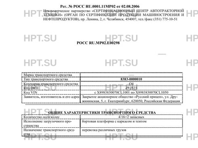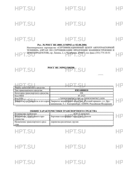 | Тип ТС | 8383-0000010 |