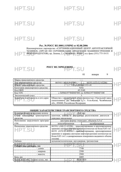 | Тип ТС | 6619А1 (АЦ-5,5-43206) 66191 (АТЗ-5,5-43206) |