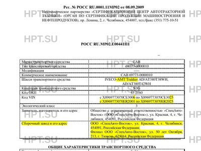 | Заявитель | Общество с ограниченной ответственностью "СпецАвтоВосток" (ООО "СпецАвто-Восток"), ул. Красная, 4, г. Челябинск, 454091, Российская Федерация |