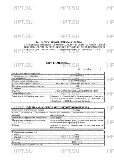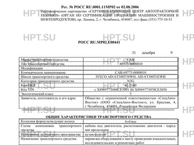 | Предприятие-изготовитель | Общество с ограниченной ответственностью "СпецАвто-Восток" (ООО "СпецАвто-Восток"), ул. Красная, 4, г.Челябинск, 454091, Российская Федерация |