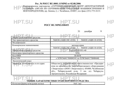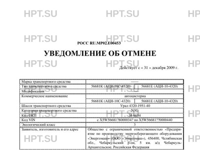 | Тип ТС | 56681К (АЦН-10С-4320) 56681Е (АЦН-10-4320) |