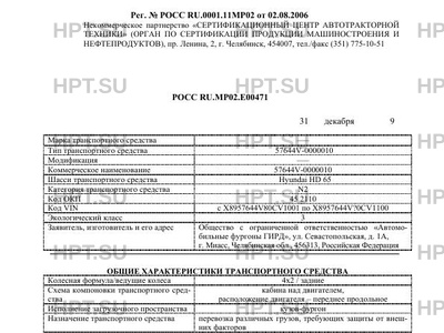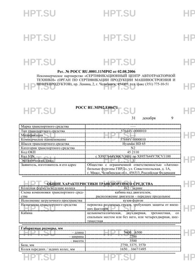 | Базовое ТС / Шасси | Hyundai HD 65 |