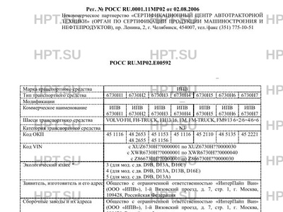 | Базовое ТС / Шасси | VOLVO FH, FH-TRUCK, FH13/16, FM, FM-TRUCK, FM9/13 6x2/6x4/6x6 |