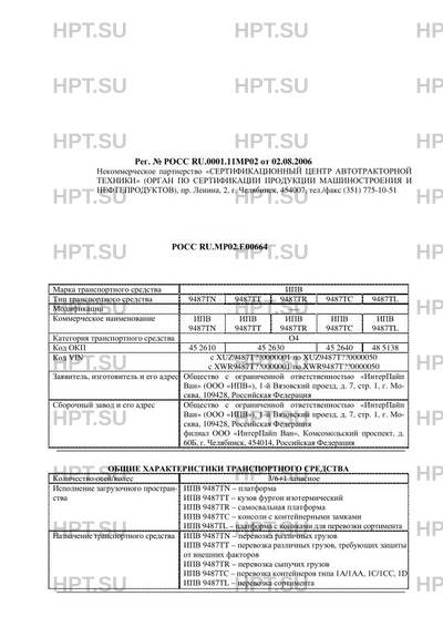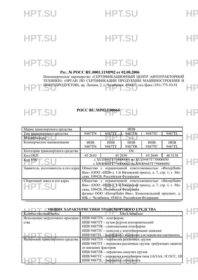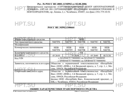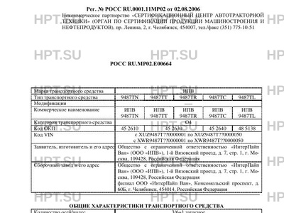 | Код VIN | с XUZ9487T??0000001 по XUZ9487T??0000050, с XWR9487T??0000001 по XWR9487T??0000050 |