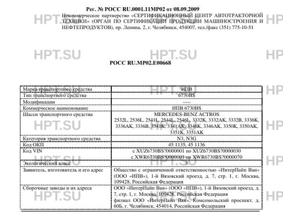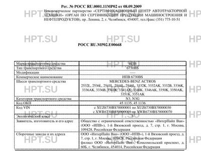 | Базовое ТС / Шасси | MERCEDES-BENZ ACTROS 2532L, 2536L, 2541L, 2544L, 2546L, 3332K, 3332AK, 3332B, 3… |