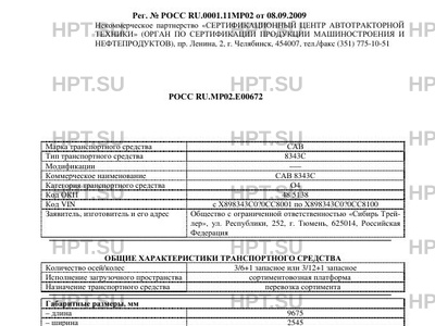 | Предприятие-изготовитель | Общество с ограниченной ответственностью «Сибирь Трейлер», ул. Республики, 252, г. Тюмень, 625014, Российская Федерация |