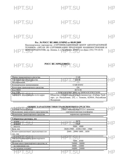 | Тип ТС | 8343С |