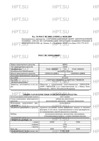 | Марка ТС | HINO |