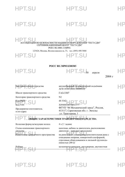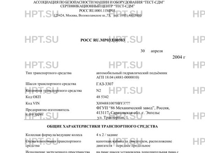 | Коммерческое наименование | автомобильный гидравлический подъемник АГП 18.04 (4881-0000010) на ГАЗ-3307 |