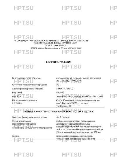 | Коммерческое наименование | автомобильный гидравлический подъемник ВС-28К (48214-0000010) на КамАЗ-43253-02 |