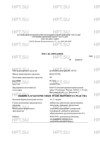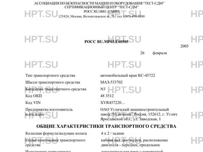 | Тип ТС | автомобильный кран КС-45722 на МАЗ-533702 |