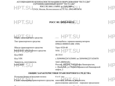 | Коммерческое наименование | автомобиль с краном-манипулятром 690622-0000010 (ИК 1508) на шасси Урал 4320-40 |