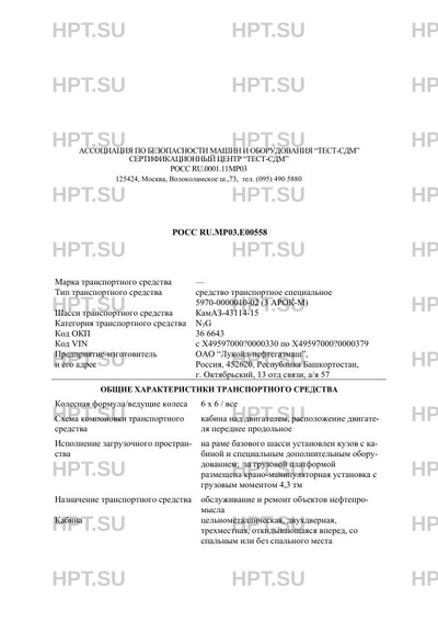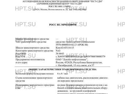 | Тип ТС | средство транспортное специальное 5970-0000010-02 (3 АРОК-М) на КамАЗ-43114-15 |
