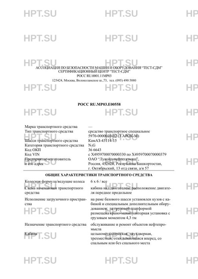 | Коммерческое наименование | средство транспортное специальное 5970-0000010-02 (3 АРОК-М) на КамАЗ-43114-15 |