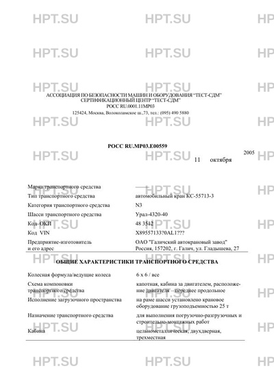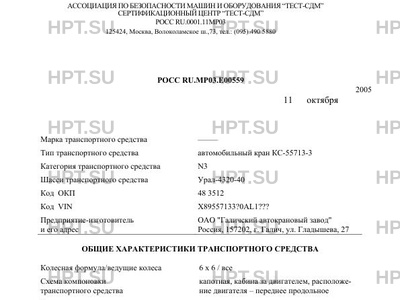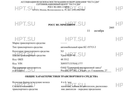 | Тип ТС | автомобильный кран КС-55713-3 на Урал-4320-40 |