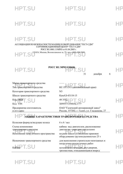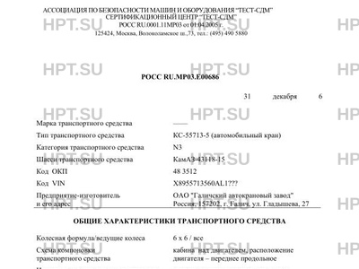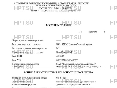 | Тип ТС | КС-55713-5 (автомобильный кран) |
