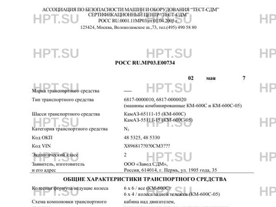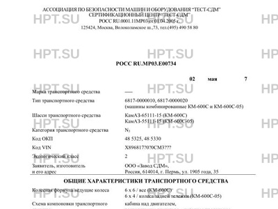 Коммерческое наименование 6817-0000010, 6817-0000020 (машины комбинированные КМ-600С и КМ-600С-05) на Кам…