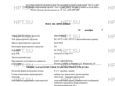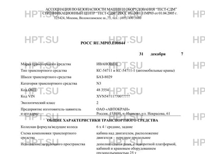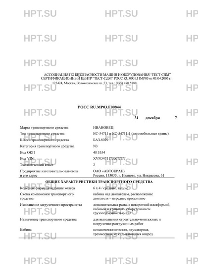 | Тип ТС | КС-54711 и КС-54711-1 (автомобильные краны) |