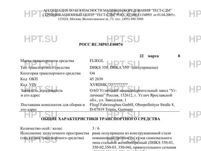 | Тип ТС | DНKS 350, DНKA 350 (полуприцепы) |