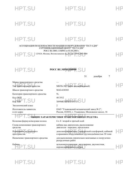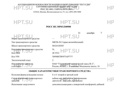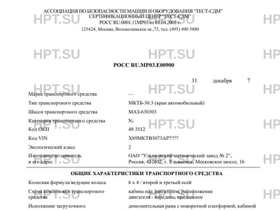 | Тип ТС | МКТБ-30.3 (кран автомобильный) |