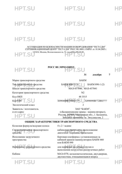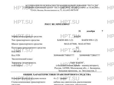 Предприятие-изготовитель ЗАО “БАКМ”, («Балашихинские краны - манипуляторы»), Россия, 143900, Московская обл., г. Балашиха, Западная промзона, ш. Энтузиастов, 2