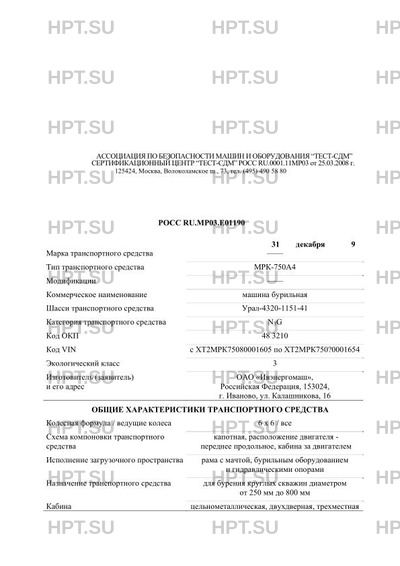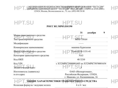 | Тип ТС | МРК-750А4 |