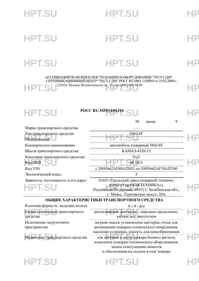 | Коммерческое наименование | автомобиль пожарный 5662AF |