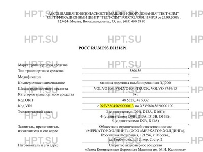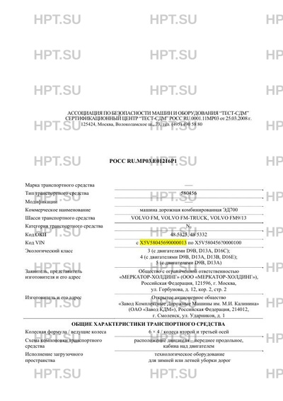 | Базовое ТС / Шасси | VOLVO FM, VOLVO FM-TRUCK, VOLVO FM9/13 |