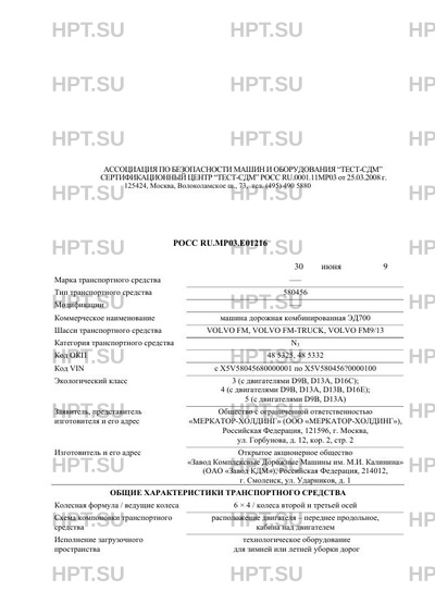 | Базовое ТС / Шасси | VOLVO FM, VOLVO FM-TRUCK, VOLVO FM9/13 |