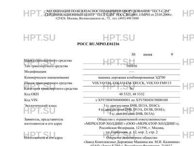 | Коммерческое наименование | машина дорожная комбинированная ЭД700 |